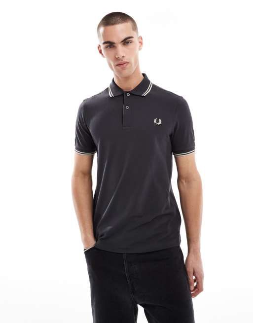 Fred Perry - Polo avec bordures à double rayure - Gris foncé