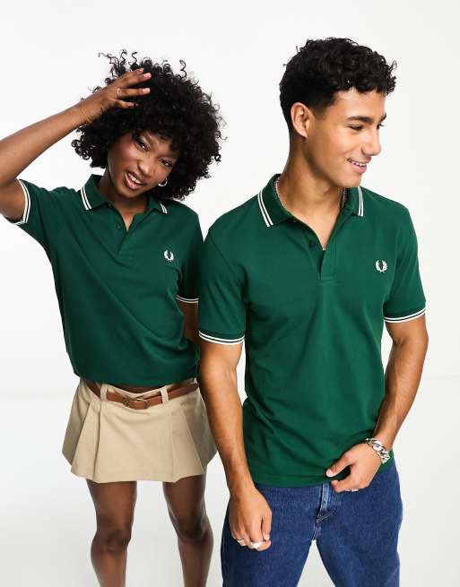 Fred Perry - Polo unisexe avec logo et double liseré - Vert