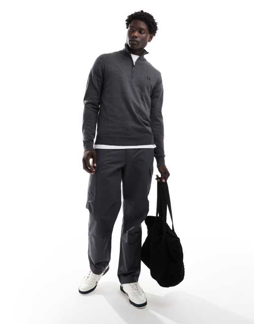Fred Perry - Pull classique en maille à col zippé - Gris zippé