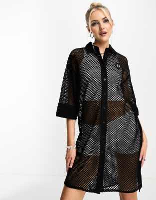 Fred Perry - Robe chemise en maille ajourée - Noir