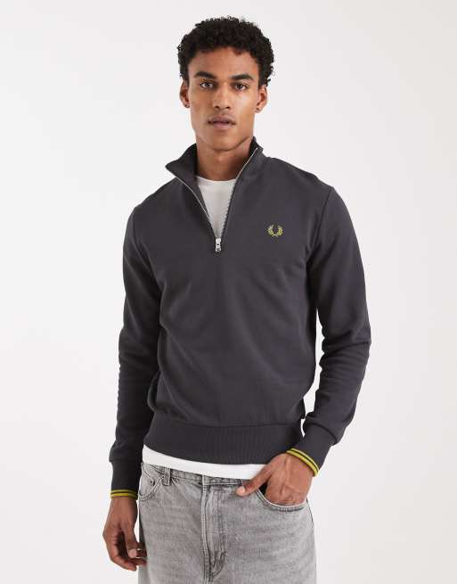 Fred Perry - Sweat à col zippé avec liserés - Gris