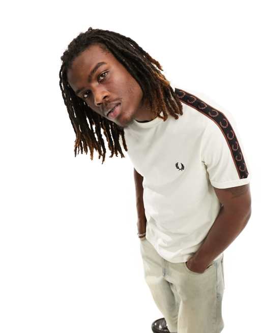 Fred Perry - T-shirt à logo avec liseré et bande contrastante - Écru