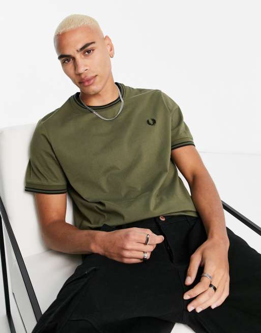Fred Perry - T-shirt avec bord double rayure - Kaki