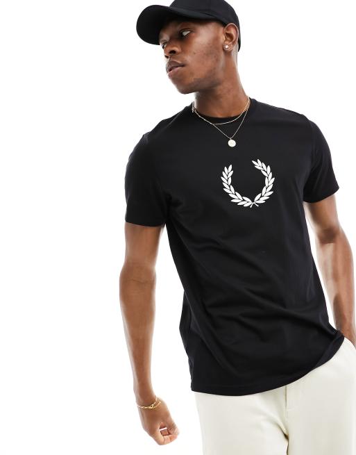 Fred Perry - T-shirt avec logo couronne de lauriers floqué - Noir