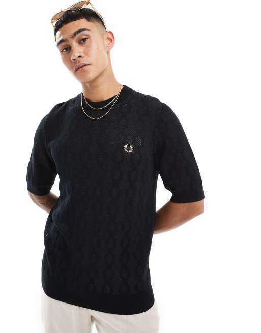 Fred Perry - T-shirt en maille torsadée ajourée - Noir