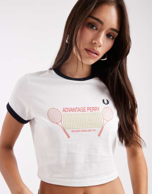 Fred Perry - T-shirt imprimé à bordures contrastantes - Blanc
