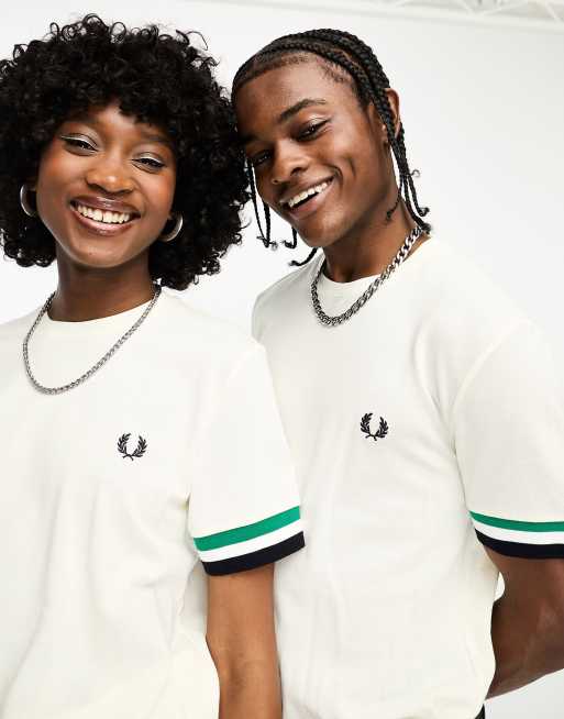 Fred Perry - T-shirt unisexe en piqué à liserés contrastants - Blanc