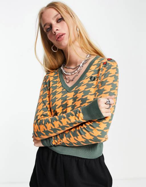 Fred Perry x Amy Winehouse - Pull motif pied-de-poule - Orange