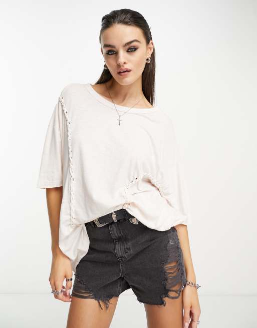 Free People - T-shirt oversize avec détail croisillons - Lait d'amande