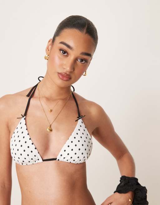 Free Society - Haut de bikini triangle à pois - Blanc