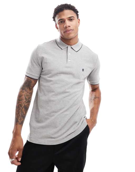 French Connection - Polo en piqué à liseré unique - Gris clair