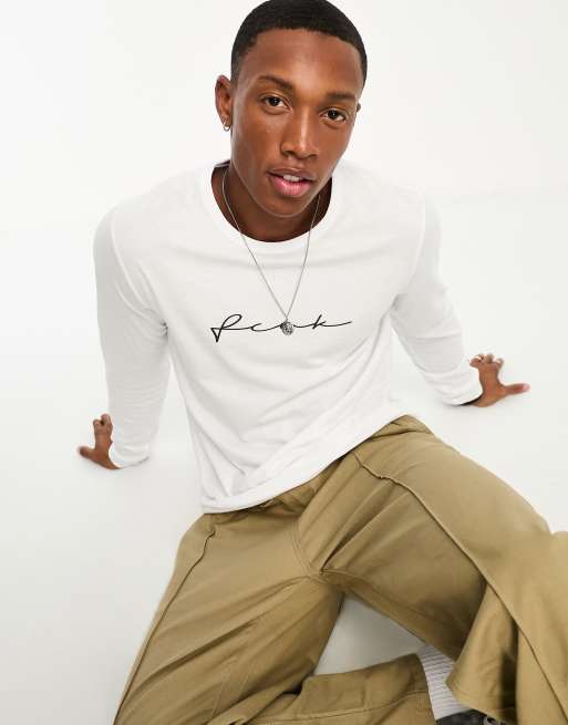 FCUK - T-shirt à manches longues et logo esquissé - Blanc