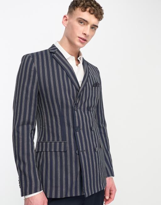 French Connection - Blazer en lin à fines rayures et double boutonnage