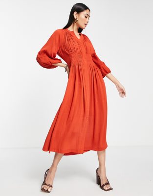 French Connection - Cora - Robe mi-longue plissée - Rouge