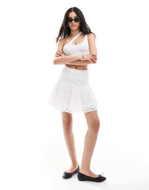 French Connection - Mini-jupe virevoltante en broderie anglaise - Blanc