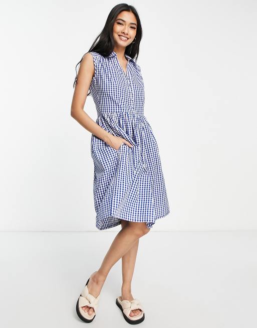 French Connection - Rita - Robe chemise sans manches à carreaux - Bleu