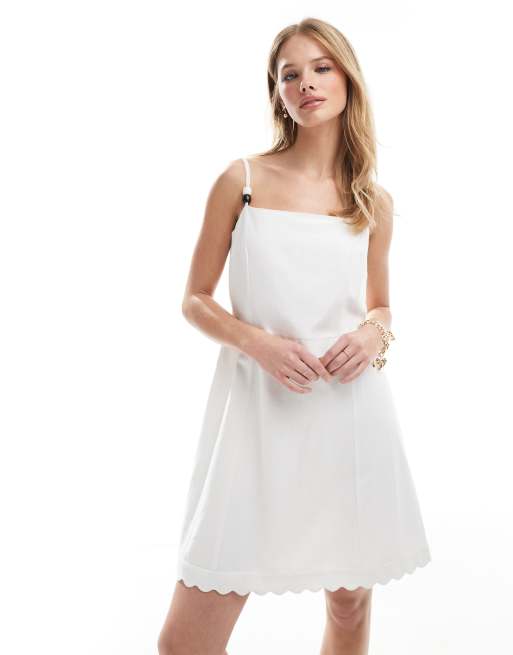 French Connection - Robe courte en lin à ourlet festonné - Blanc