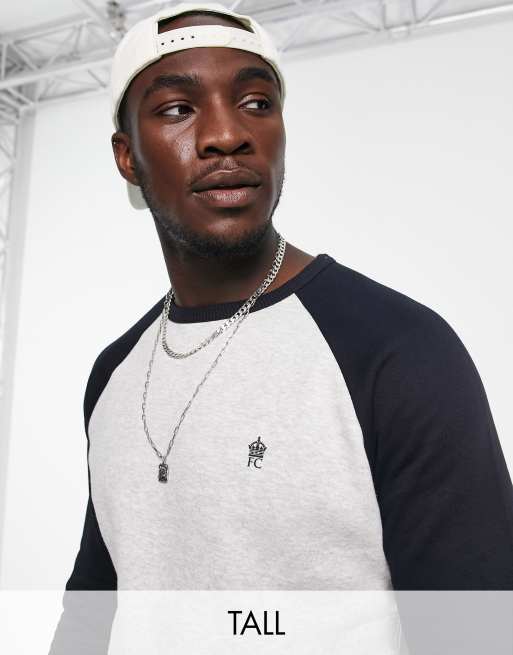 French Connection Tall - Sweat à manches raglan - Gris clair et bleu marine