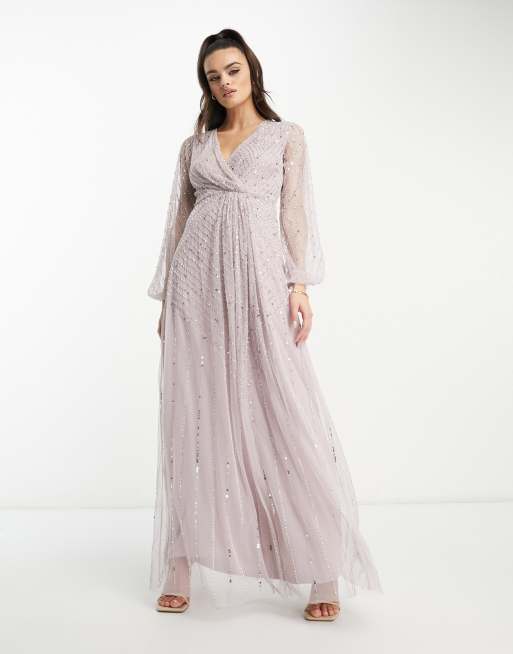 Frock and Frill - Robe longue demoiselle d'honneur à sequins et décolleté plongeant - Mauve poudré