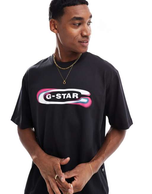 G-Star - T-shirt oversize avec logo rétro effet dégradé - Noir