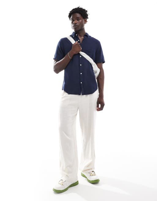 GANT - Chemise à manches courtes en lin et coton texturés - Bleu marine