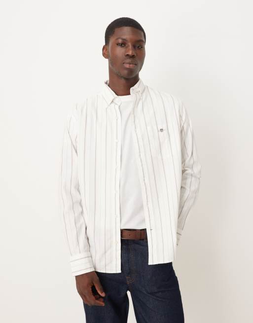 GANT - Chemise Oxford coupe classique à rayures et logo - Blanc