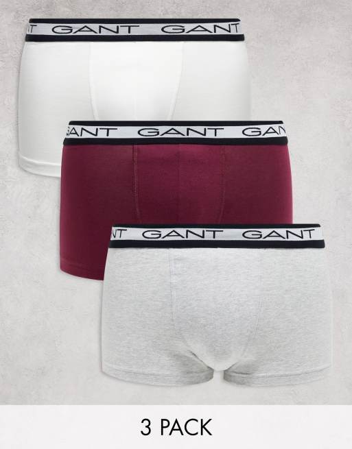 GANT - Lot de 3 boxers à taille griffée - Blanc/gris/rouge