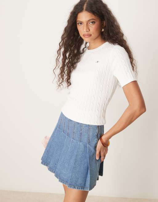 GANT - Pull manches courtes à logo en maille torsadée de coton - Blanc