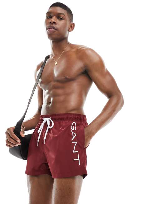 GANT - Short de bain avec inscription sur le côté - Rouge