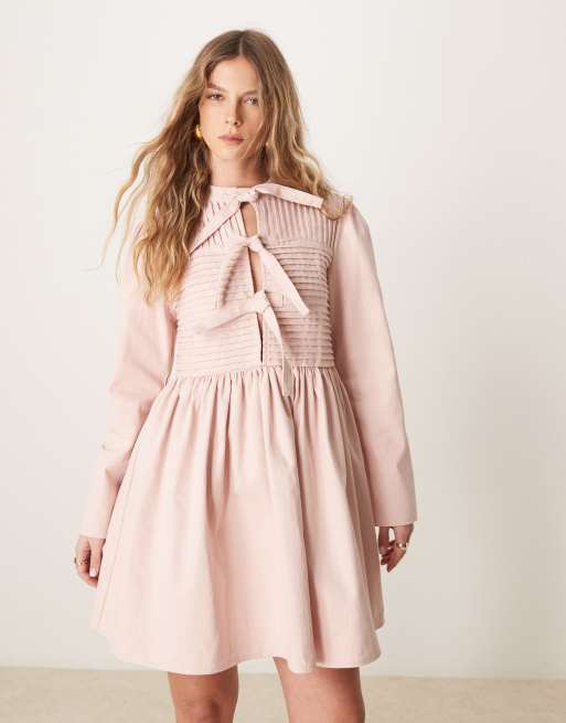 Ghospell - Robe courte avec nœuds - Rose poudré