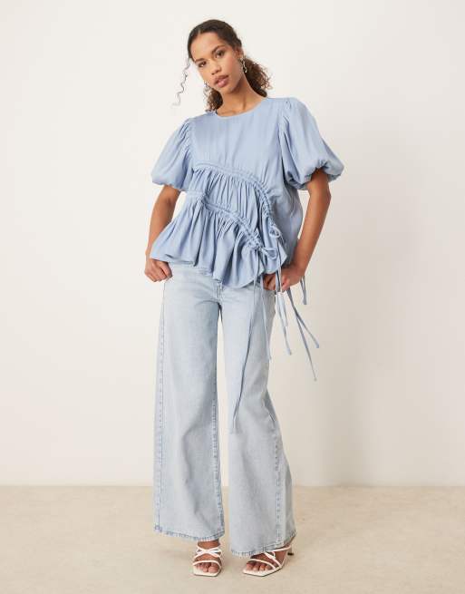 Ghospell - Top asymétrique à volants - Bleu pastel
