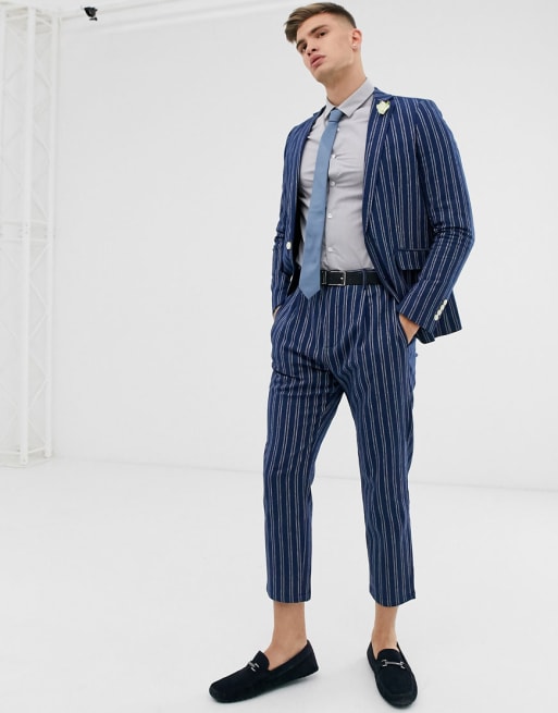 Gianni Feraud - Costume slim en lin mélangé à rayures