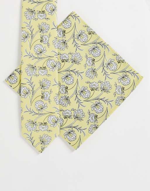 Gianni Feraud - Ensemble pochette et cravate à imprimé fleuri - Jaune