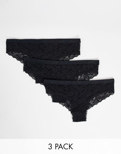 Gilly Hicks - Lot de 3 culottes en dentelle à taille griffée - Noir