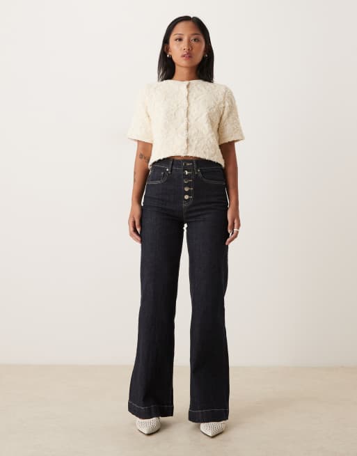 Gina Tricot Petite - Jean évasé élégant - Bleu indigo foncé délavé