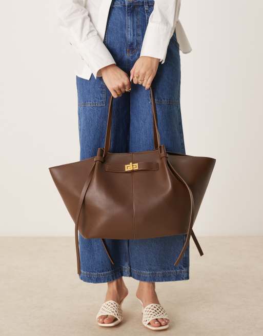 Gina Tricot - Cabas format moyen en similicuir avec lanières - Marron foncé