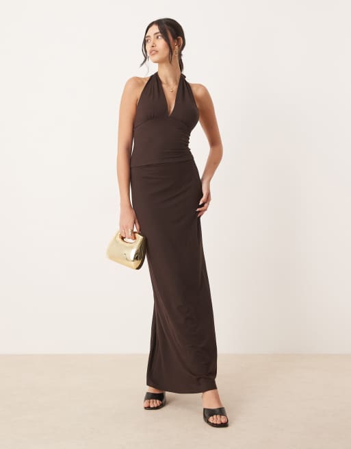 Gina Tricot - Ensemble doux au toucher avec jupe et top ajusté à dos nu - Marron