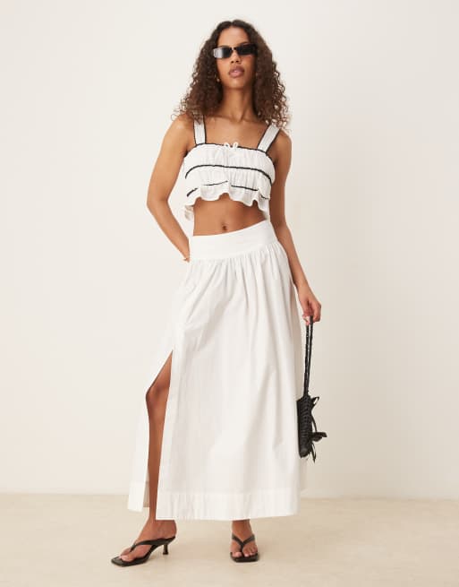 Gina Tricot - Jupe longue bouffante et fendue en popeline - Blanc