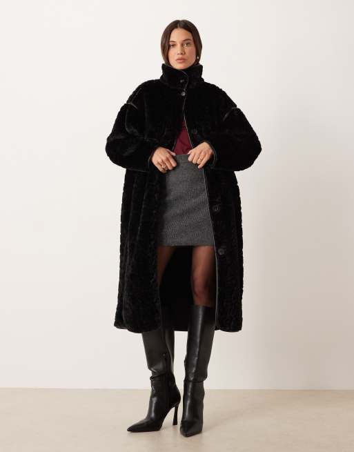 Gina Tricot - Manteau mi-long doublé en fausse fourrure - Noir