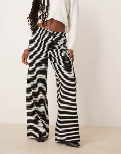 Gina Tricot - Pantalon ample en jersey rayé ultra doux avec taille à cordon de serrage - Noir et blanc
