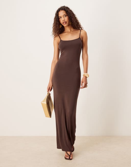 Gina Tricot - Robe caraco longue en jersey doux - Marron foncé
