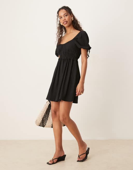 Gina Tricot - Robe courte bouffante à manches courtes - Noir