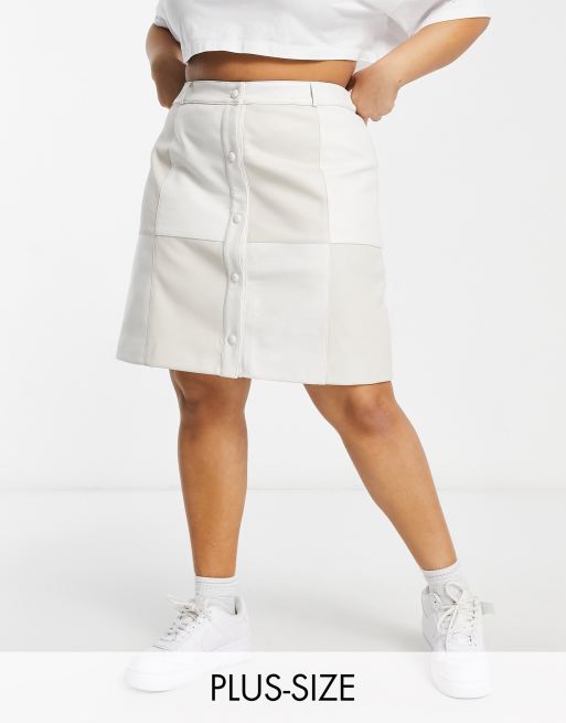 Glamorous Curve - Jupe à motif patchwork en PU - Crème