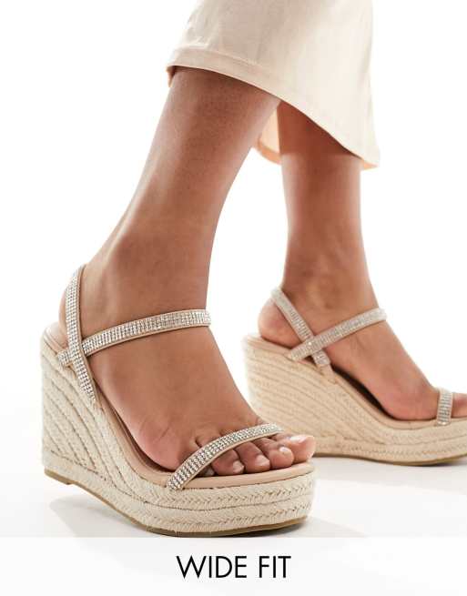 Glamorous Wide Fit - Espadrilles à talon compensé et strass argentés