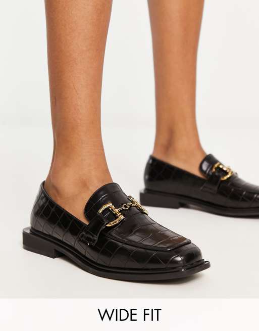 Glamorous Wide Fit - Mocassins effet croco avec mors - Noir