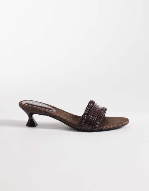 Glamorous Wide Fit - Sandales effet tressé à petit talon - Marron