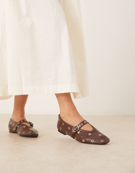 Glamorous - Ballerines avec bride à boucle et œillets - Marron