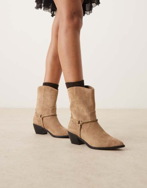 Glamorous - Bottines style western à petit talon - Taupe micro