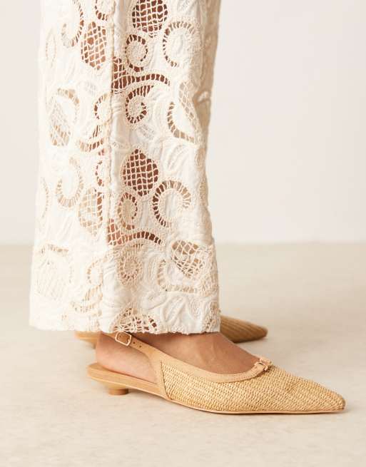 Glamorous - Chaussures à talon bas et bride arrière en raphia - Naturel