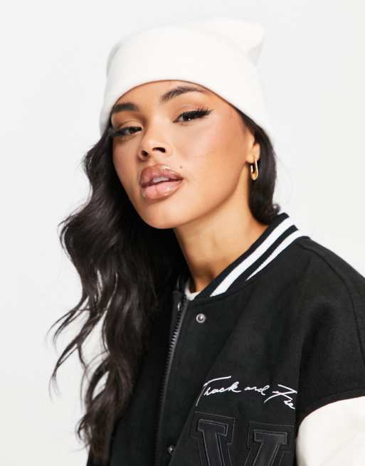 Glamorous - Exclusivité - Bonnet côtelé à revers - Blanc cassé